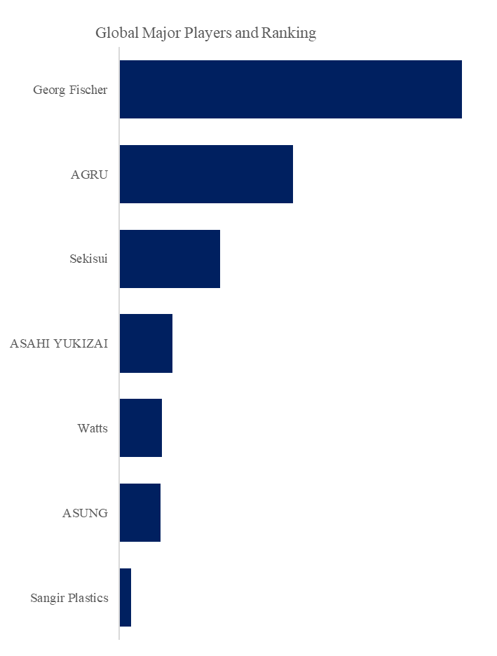 QYResearchトッププレイヤー調査センターによると、超純水配管システムの世界的な主要メーカーには、Georg Fischer, AGRU, Sekisui, ASAHI YUKIZAI, Watts, ASUNG, Sangir Plasticsなどが含まれる。2024年、世界トップ5社の売上高シェアは約69.0%を占めた。