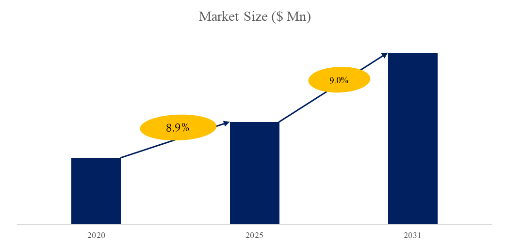 1.市場データと予測:市場に関する過去のデータ(2020年~2024年)と将来の予測(2031年まで)を提供し、成長の動向と市場の展望を示します。