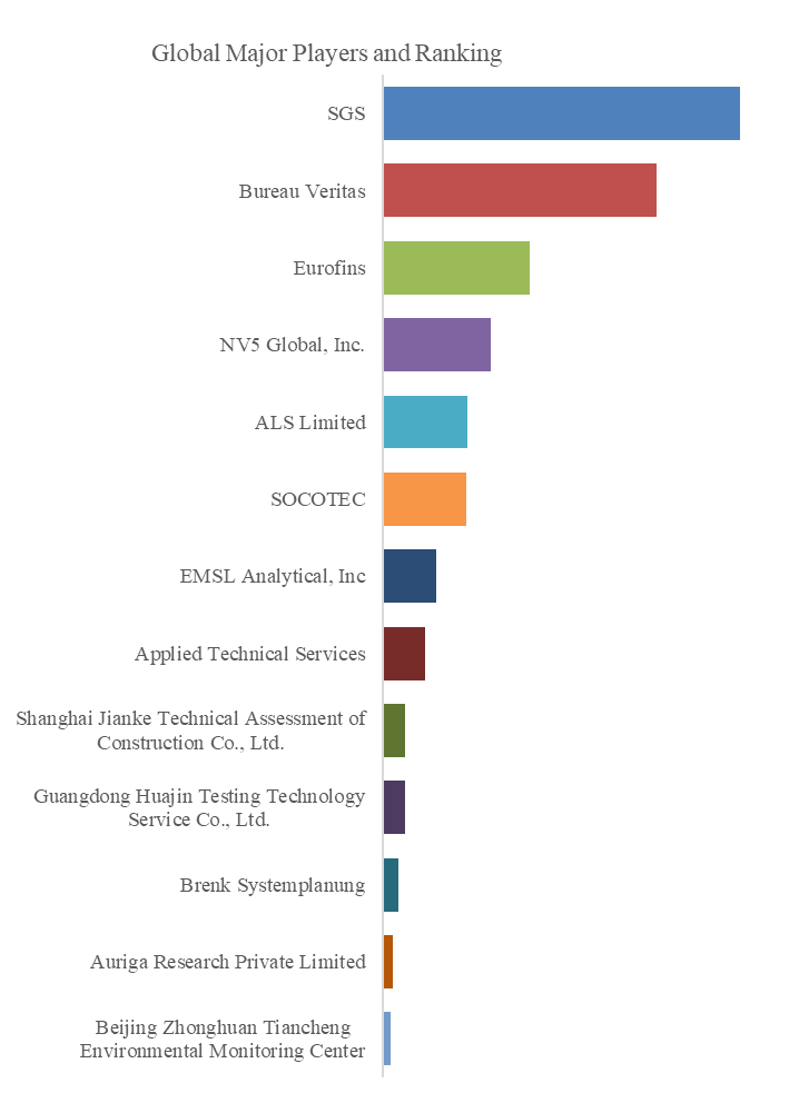 本レポートは、SGS、Bureau Veritas、Eurofinsなどの建築材料の放射能検査の主要プレイヤーについてプロファイリングしています。2024年には、世界の建築材料の放射能検査トップ5プレイヤーで、収益ベースの市場シェアの41.22%を占めています。上図は、建築材料の放射能検査の収益でランク付けされた主要プレイヤーを示しています。