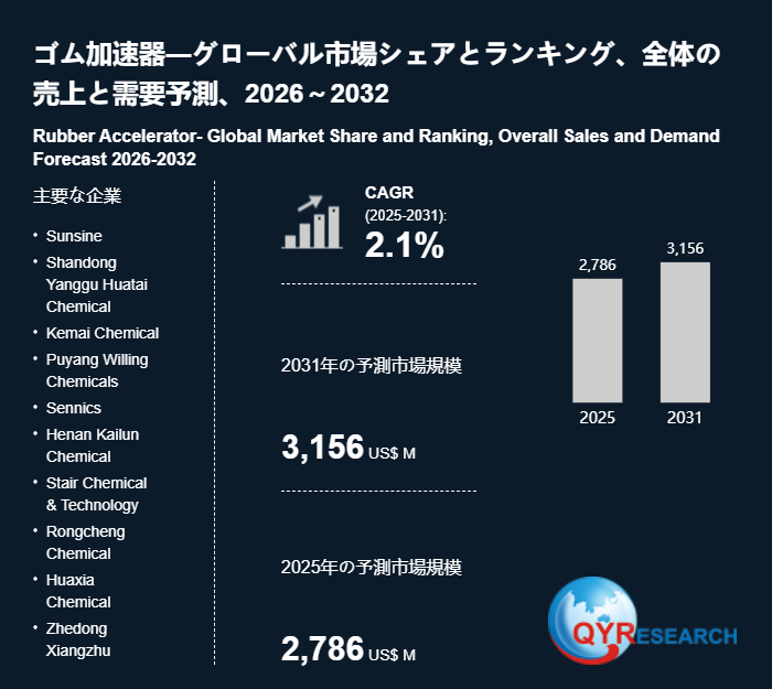 QY Research株式会社(東京都中央区)は、「ゴム加速器―グローバル市場シェアとランキング、全体の売上と需要予測、2026~2032」の最新レポートを発表しました。