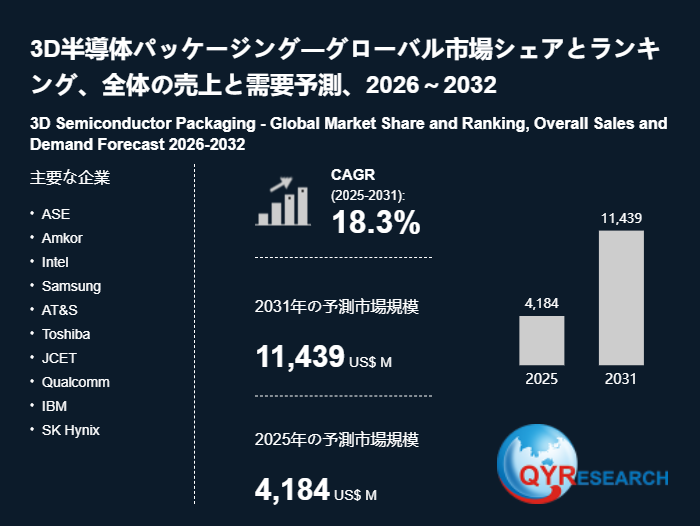 QY Research株式会社(東京都中央区)は、「3D半導体パッケージング―グローバル市場シェアとランキング、全体の売上と需要予測、2026~2032」の最新レポートを発表しました。