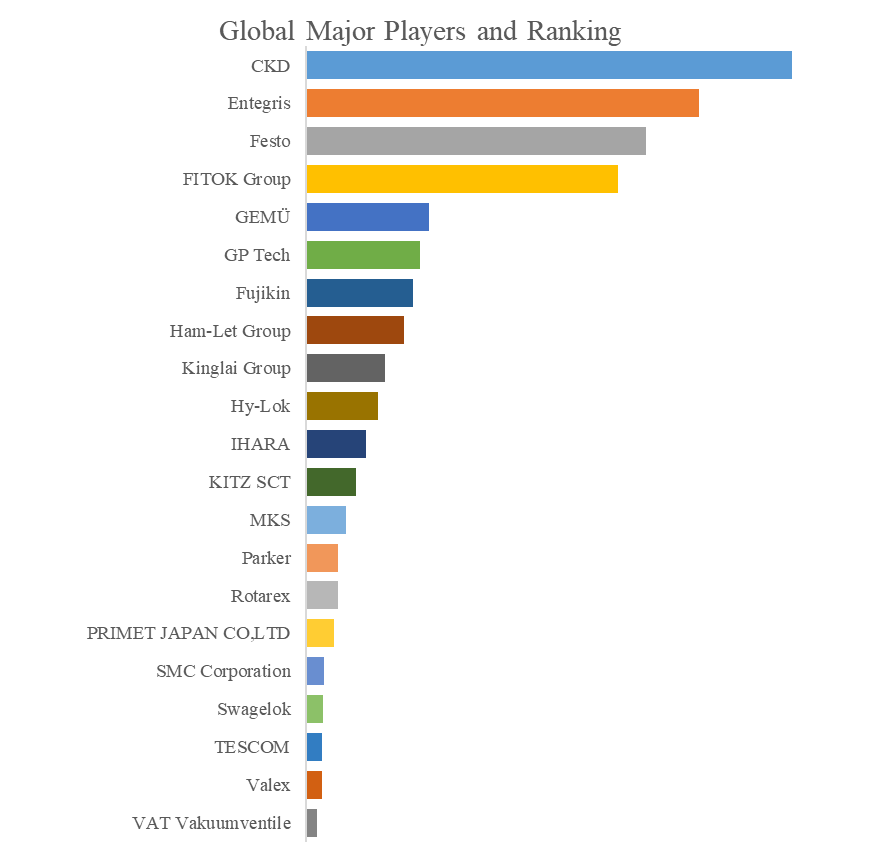 QYResearchのトップ企業研究センターによると、半導体バルブおよび配管継手の世界的な主要製造業者には、CKD、Entegris、Festo、FITOK Group、GEMÜ、GP Tech、Ham-Let Group、Fujikin、Kinglai Group、Hy-Lokなどが含まれている。2024年、世界のトップ10企業は売上の観点から約73.0%の市場シェアを持っていた。