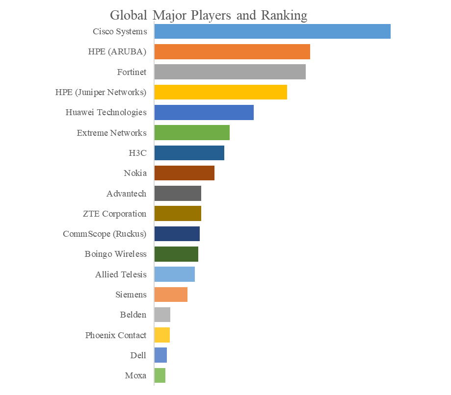 QYResearchのトップ企業研究センターによると、産業用無線LANの世界的な主要製造業者には、Cisco Systems、HPE (ARUBA)、Fortinet、HPE (Juniper Networks)、Huawei Technologies、Extreme Networks、Nokia、H3C、Advantech、ZTE Corporationなどが含まれている。2024年、世界のトップ10企業は売上の観点から約58.0%の市場シェアを持っていた。