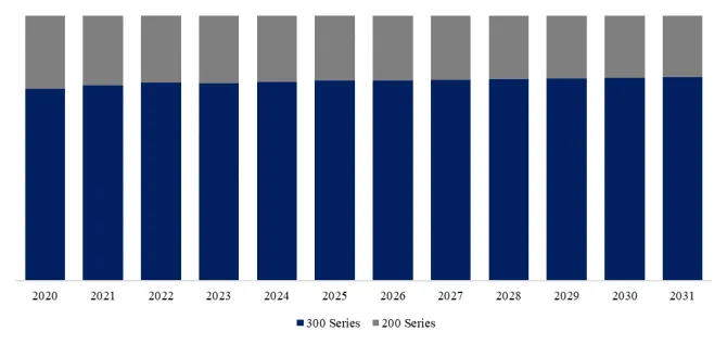 図表.世界オーステナイト系ステンレス鋼市場規模(百万米ドル)、2019年~2031年