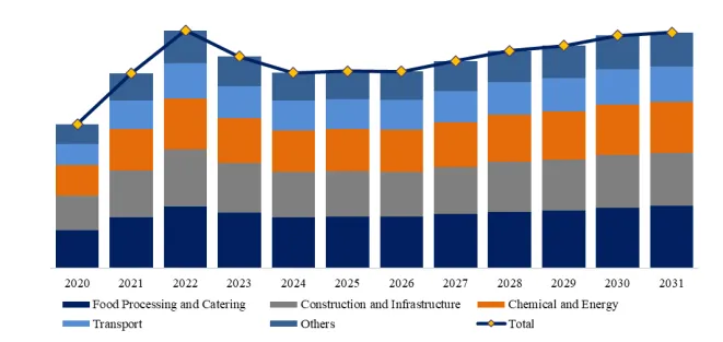 用途別では、食品加工およびケータリングが最大セグメントであり、26.1%のシェアを持っています。