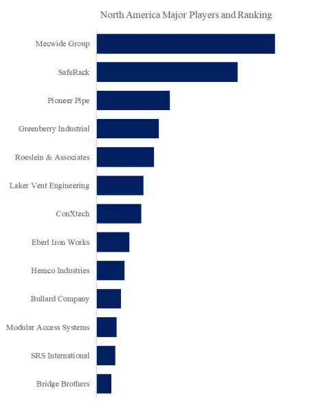 QYResearch トッププレーヤー研究センターによると、プレエンジニアリングされたモジュラーパイプラックの世界的な主要メーカーには、Mecwide Group、SafeRack、Pioneer Pipe、Greenberry Industrial、Roeslein & Associates、Laker Vent Engineering、ConXtech、Eberl Iron Works、Hemco Industries などがあります。2024 年、世界トップ 5 社の収益シェアは約 43.8% でした。