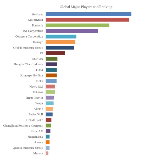 QYResearch トッププレーヤー研究センターによると、業務用テーブルとチェアの世界的な主要メーカーには、Steelcase、MillerKnoll、Haworth、HNI Corporation、Okamura Corporationなどが含まれます。2024 年、世界トップ 5 社の収益シェアは約 19.06%、世界トップ 10 社の収益シェアは約 24.41% でした。