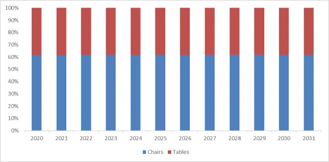 図:業務用テーブルとチェア、製品セグメント別世界市場規模
