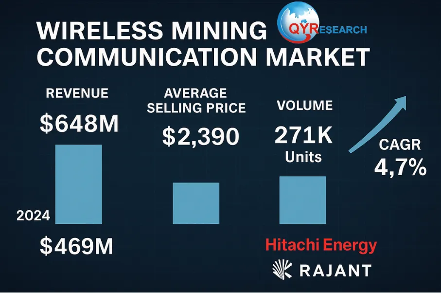 QYResearchの最新レポートによると、無線鉱山通信市場(Wi-Fi、セルラー型プライベートLTE/5G、衛星、ハイブリッドシステムを含む)の世界市場規模は、2024年に469百万ドルと評価され、2031年には648百万ドルに達すると予測されています。2025年から2031年にかけての年平均成長率(CAGR)は4.7%と見込まれています。これらのネットワークは、露天鉱山および地下鉱山の両方において、安全性、モニタリング、自動化、さらにリアルタイムの映像・音声・データ通信を支える重要なインフラとなっています。