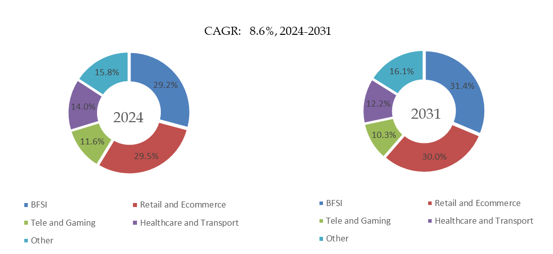 製品用途別では、現在小売・EC分野が最大のセグメントであり、29.5%のシェアを占めている。