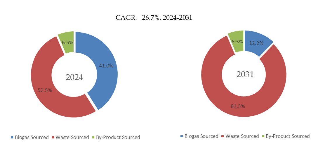 製品タイプ別では、現在廃棄物由来が最大のセグメントであり、52.5%のシェアを占めている。