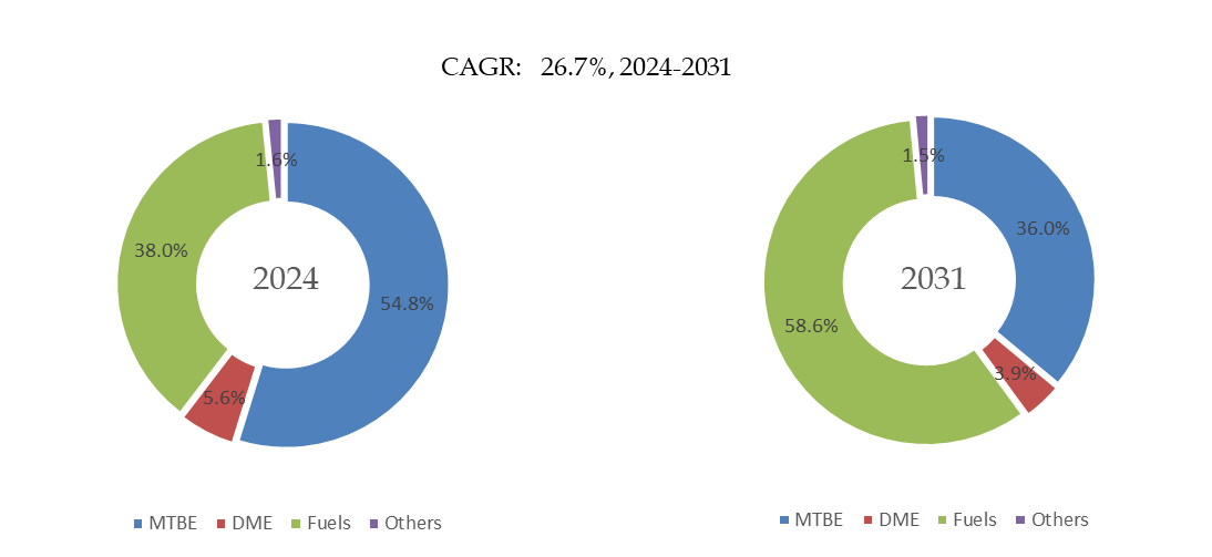 図。バイオメタノール、世界市場規模、製品セグメント別内訳