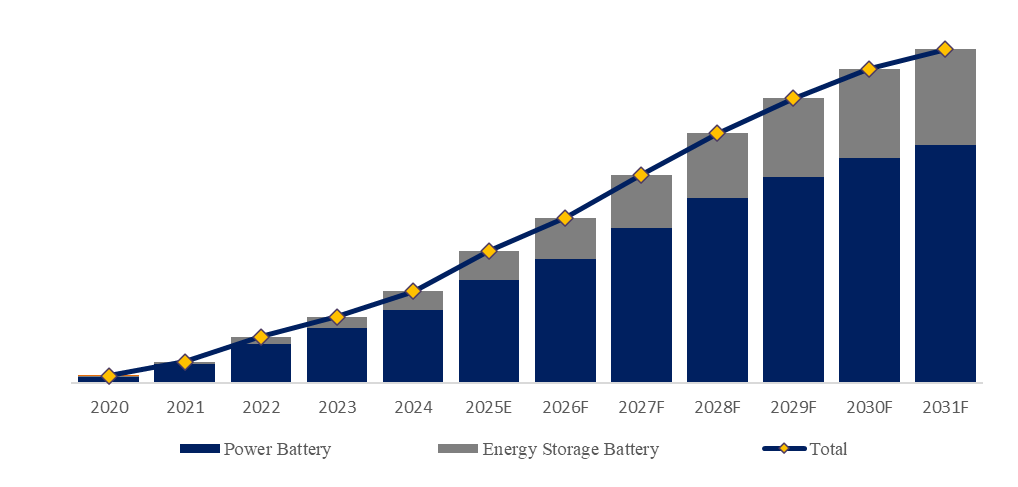 製品用途別では、現在パワーバッテリーが最大のセグメントであり、79.0%のシェアを占めている。