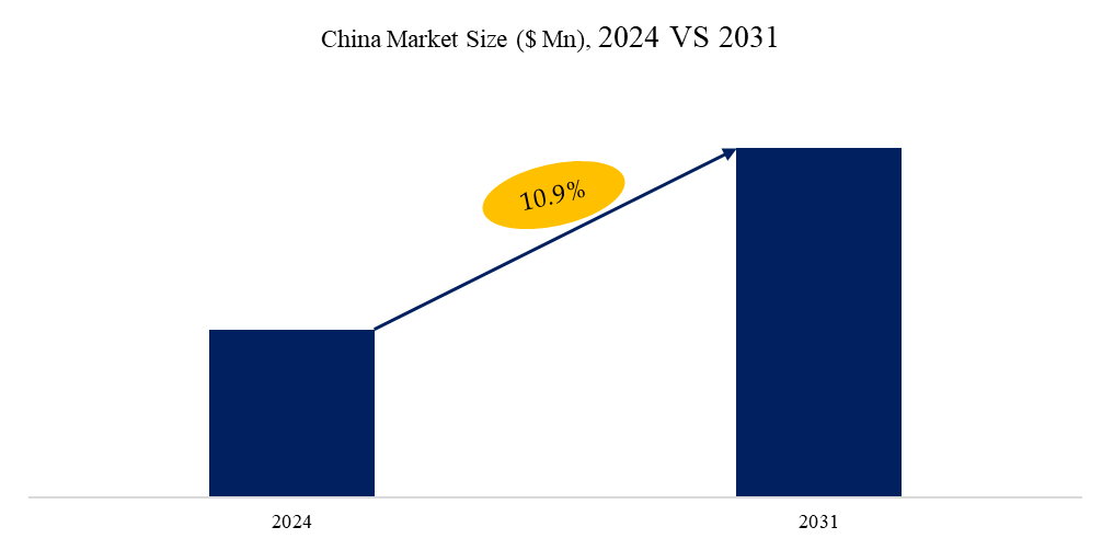 図. 中国CDMO市場規模(百万米ドル)、2024年対2031年