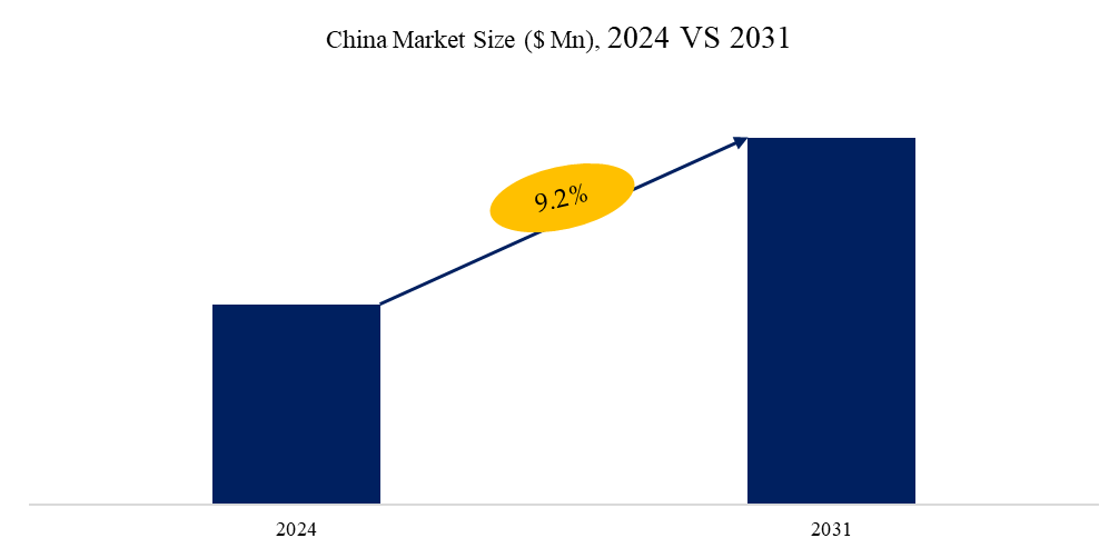 図. 中国臨床研究機関(CRO)市場規模(百万米ドル)、2024年対2031年