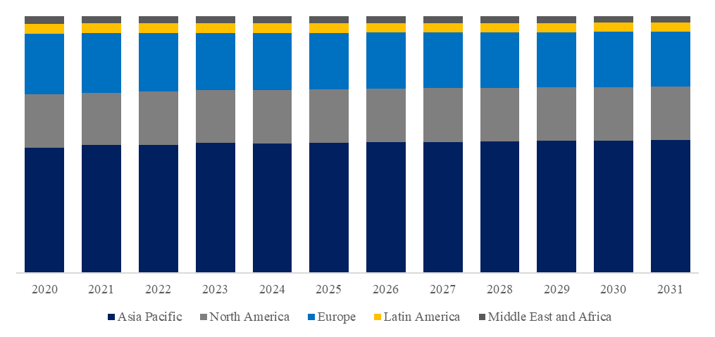 図。 ブチル接着剤、世界市場規模、地域別内訳