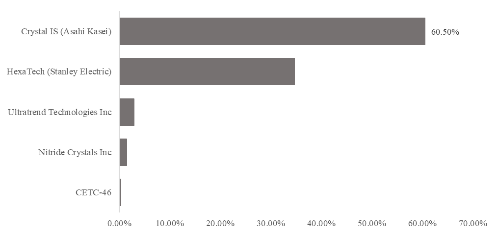 2024年には、市場は少数の主要企業によって支配される見込みである:Crystal ISとHexaTechがティア1を形成し、Ultratrend、Nitride Crystals、CETC-46などの企業がティア2/3を形成する。これら2つの主要企業は、2024年に市場シェアの大部分を共同で占めることになる。
