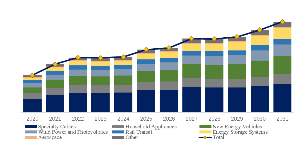 製品用途別では、現在スペシャリティケーブルが最大のセグメントであり、35.9%のシェアを占めている。