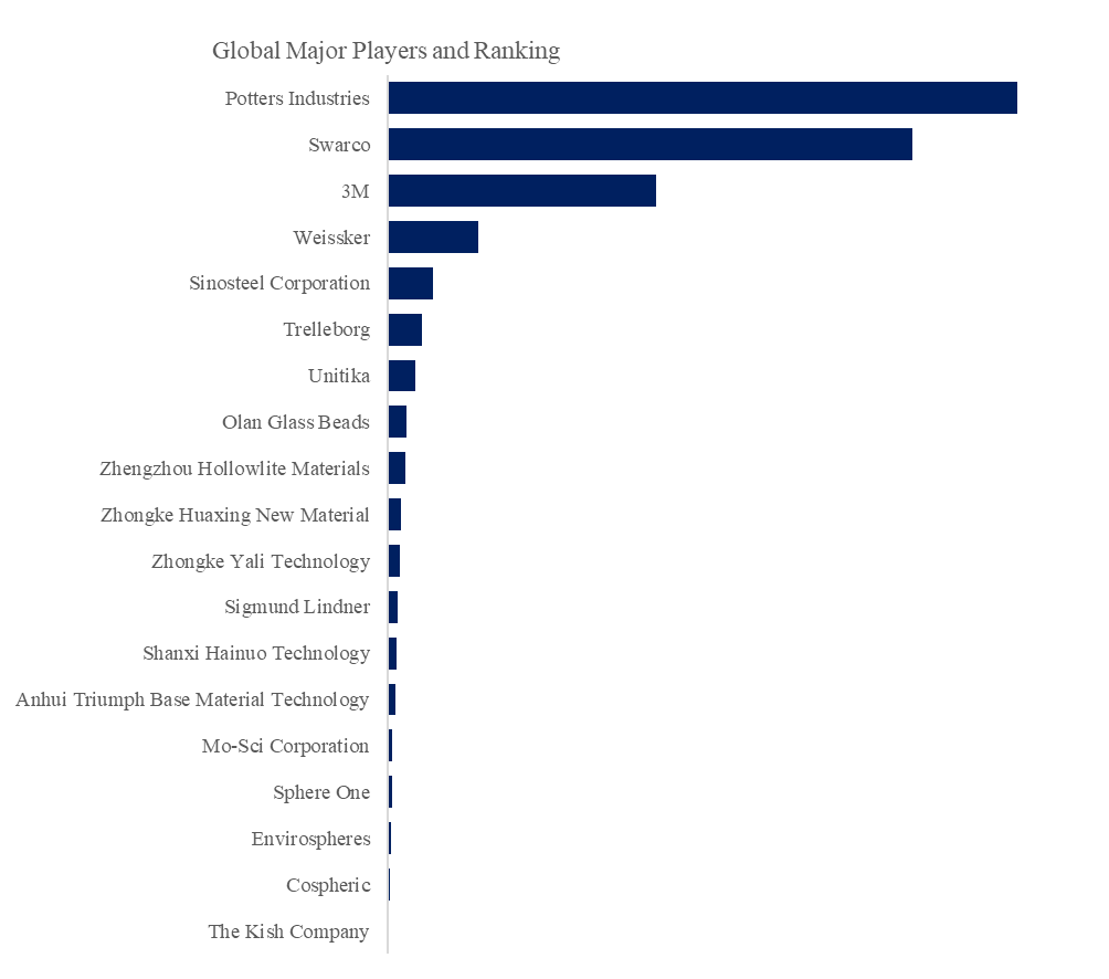 QYResearchトッププレイヤー調査センターによると、世界のガラスビーズ主要メーカーには、Potters Industries, Swarco, 3M, Weissker, Sinosteel Corporation, Trelleborg, Unitika, Olan Glass Beads, Zhengzhou Hollowlite Materials, Zhongke Huaxing New Material,などが含まれる。2024年、世界のトップ5社の売上高シェアは約67.0%を占めた。