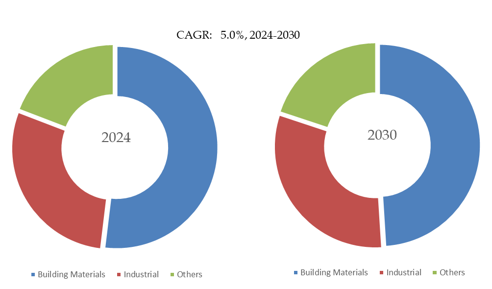 製品用途別では、現在建材が最大のセグメントであり、51.9%のシェアを占めている。