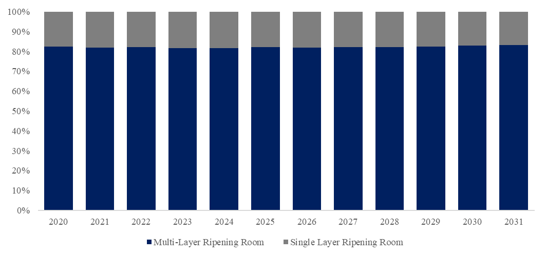 2. 世界の消費者の健康意識が大幅に高まる中、日々の食生活での栄養摂取に注目する人が増えており、特に新鮮な果物や野菜の需要は急速に増加しています。これにより、サプライヤーはこれらの鮮度の高い製品の品質や成熟度を管理するより効果的な方法を模索するようになり、固定式果実熟成室の需要がさらに増加しています。